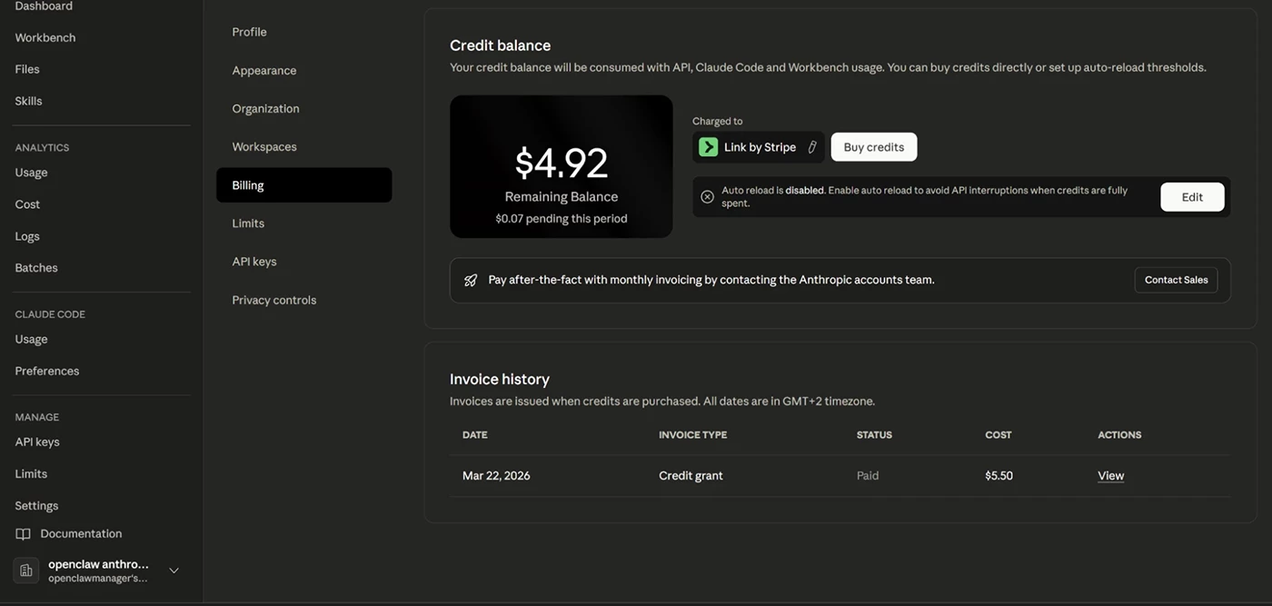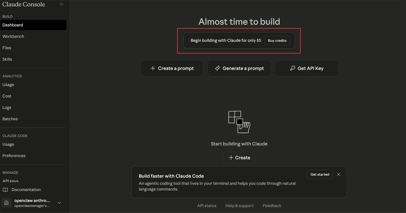 Информацию о балансе можно просмотреть в личном кабинете Anthropic.