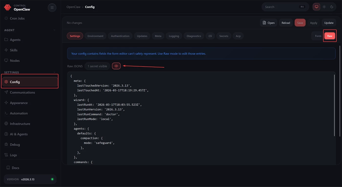 Перейдите в раздел Config, выберите формат RAW и откройте конфигурацию.