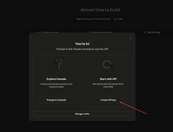 После успешной оплаты перейдите в раздел для создания API-ключа.