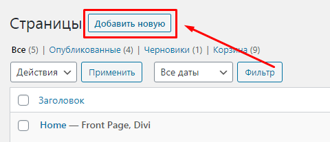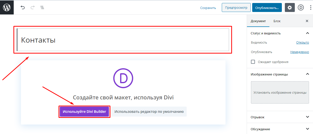 Укажите название страницы и нажмите Использовать Divi Builder: