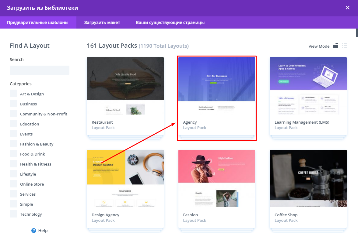 - Выбрать макет — можно использовать готовые шаблоны и адаптировать их