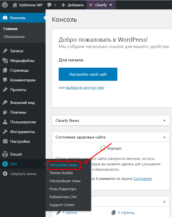 Войдите в административную панель CMS WordPress через личный кабинет или по адресу Ваш_домен/wp-admin/: