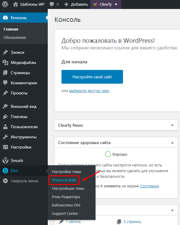 Перейдите в раздел Divi / Theme Builder: