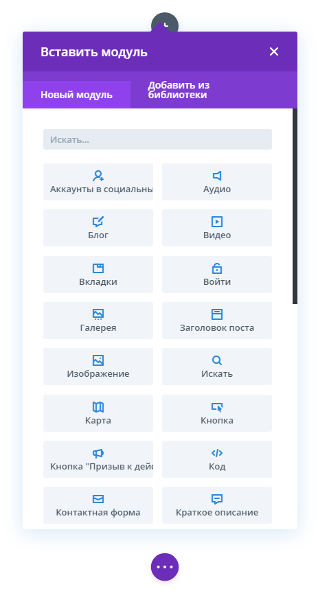 С помощью модулей заполните шапку необходимыми элементами: