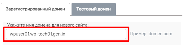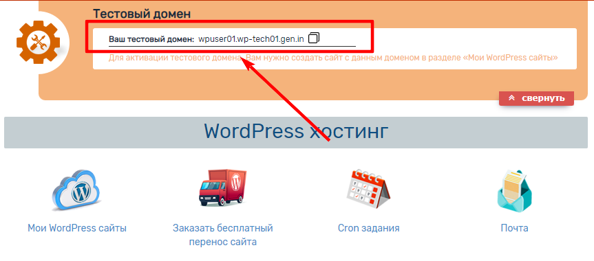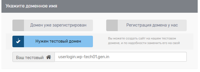 Для пользователей тарифного плана «WordPress хостинг», предоставляется тестовый домен, который можно заказать при оформлении хостинга: