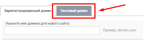 В появившемся окне в поле «Укажите имя домена для нового сайта» укажите тестовый домен: